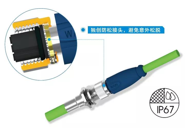 基于此,唯恩電氣應(yīng)市場需求推出M12-D Code防松圓形連接器,該結(jié)構(gòu)可解決以下問題: