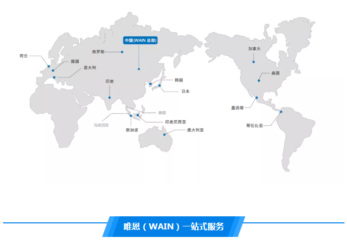 在海外,唯恩(WAIN)擁有德國(guó)分公司,新加坡分公司,日本、韓國(guó)戰(zhàn)略合作伙伴,以及在歐洲、美洲、東南亞等均有設(shè)代理商或經(jīng)銷商,從建立,到磨合,到逐步產(chǎn)生默契的配合模式,唯恩(WAIN)期望為海外客戶提供更為標(biāo)準(zhǔn)化的服務(wù)。