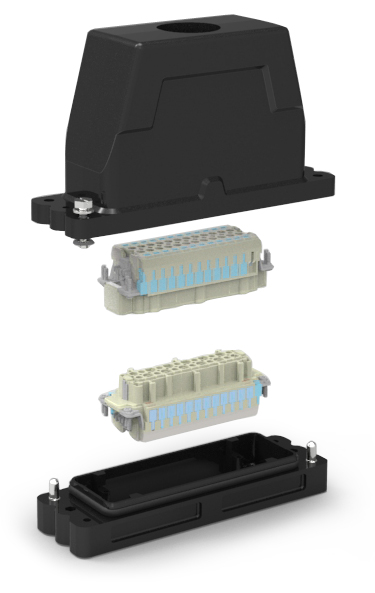 WAIN新開發(fā)的防護(hù)外殼系列可以很好的抵御最高外部負(fù)荷,與大部分主流產(chǎn)品兼容,可依據(jù)不同場合的需求,匹配多種插芯,在惡劣條件下的應(yīng)用場合均可以使用這種外殼。HP24B/H-TE-4S-XX;HP24B/H-BK-4H外殼帶導(dǎo)向裝置,金屬外殼采用鋁合金材料,工作溫度范圍-40℃~+125℃,兩顆對角導(dǎo)向銷,對接導(dǎo)向準(zhǔn)確方便、密封可靠、結(jié)構(gòu)創(chuàng)新,并通過兩顆對角螺栓鎖定,防護(hù)等級可達(dá)IP68。能滿足軌道交通行業(yè)對連接器的高要求。