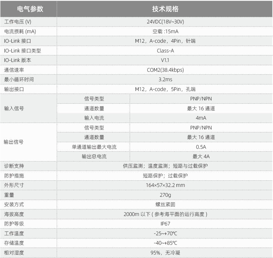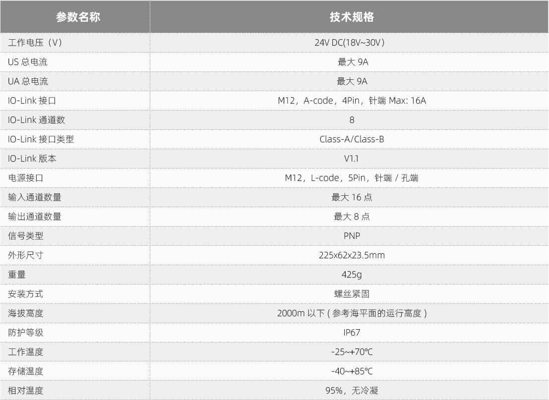 IO-Link設(shè)備/從站模塊技術(shù)參數(shù):
